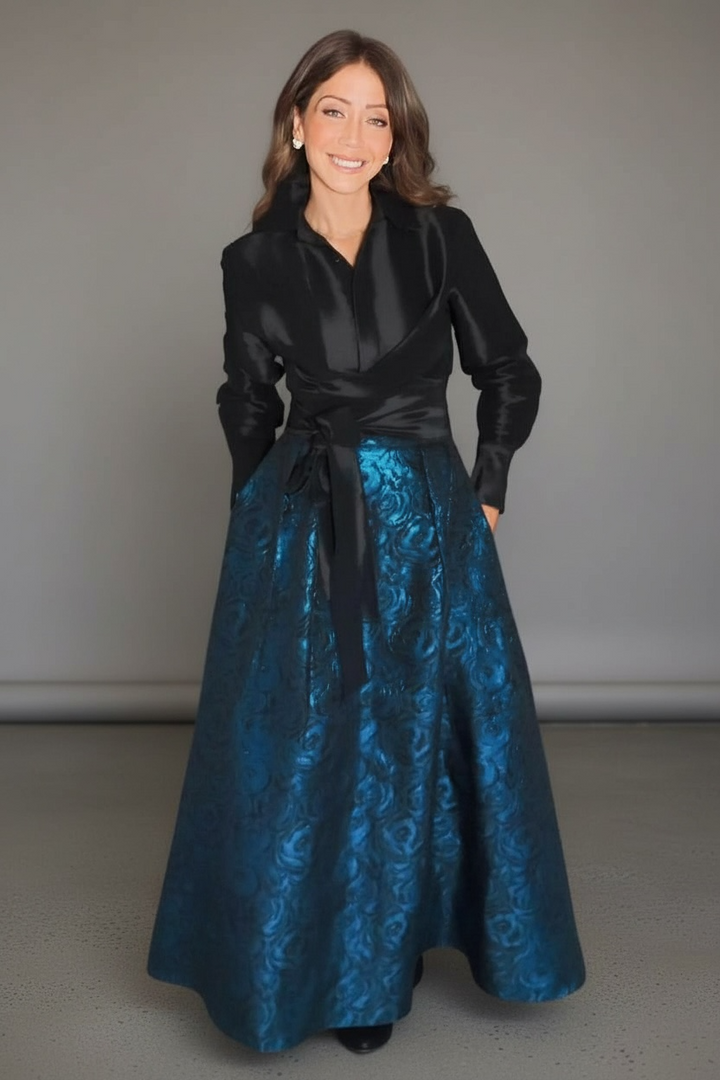 قميص سهرة فريد من نوعه، جاهز للارتداء، مصمم لأناقة خالدة. مصنوع من قماش التفتا والليكرا، يتميز ببنية متينة ومرونة فائقة، ما يجعله مثاليًا ومريحًا في الوقت نفسه.