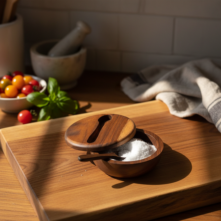 صندوق بهارات خشبي مفرد من خشب السرسوع ، صممتها الشيف مي
