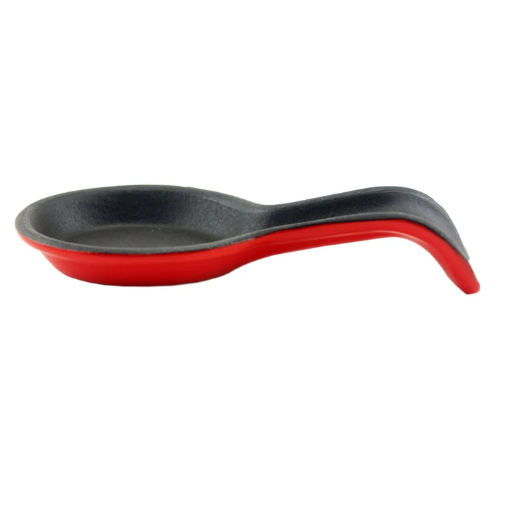 This Red 7.5 Cast Iron Spoon Rest is made of heavy duty cast iron with a hammered finish. Beautiful enamel colored coating to match any kitchen’s style. Use as a spoon rest when preparing your favorite meals, and a decorative accent when not in use.