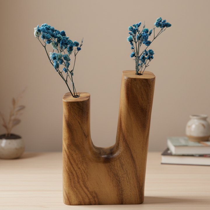 مزهرية خشبية ذات شكل فريد لديكور منزلي مريح