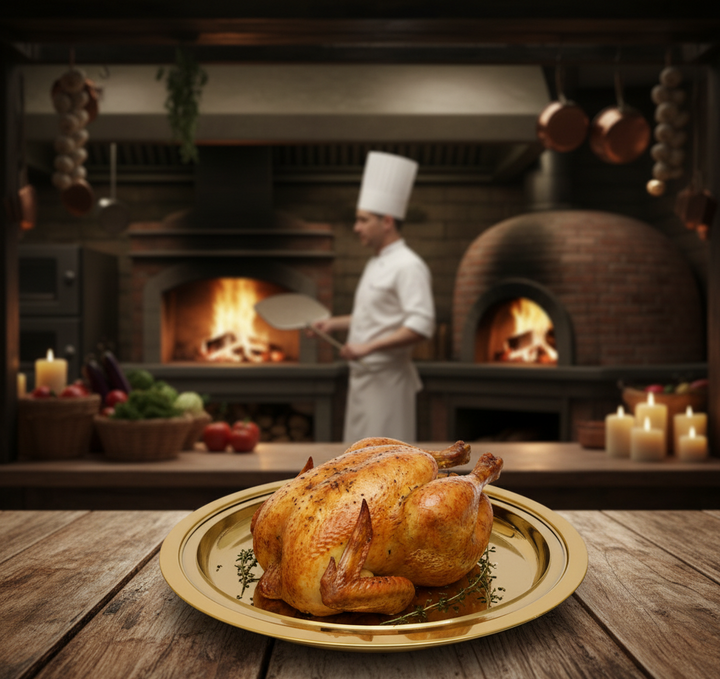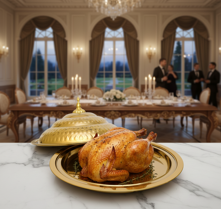 صينية تقديم دائرية من الفولاذ المقاوم للصدأ مع غطاء مطلية بالذهب