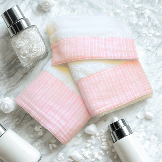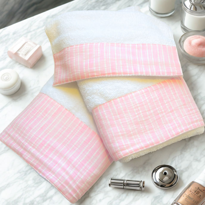 • I'm 100% Egyptian Giza (highest quality) Cotton Towel with Linen Fabric border on 1 end & 1 side to give your bathroom a stylish look. My other side has no borders.