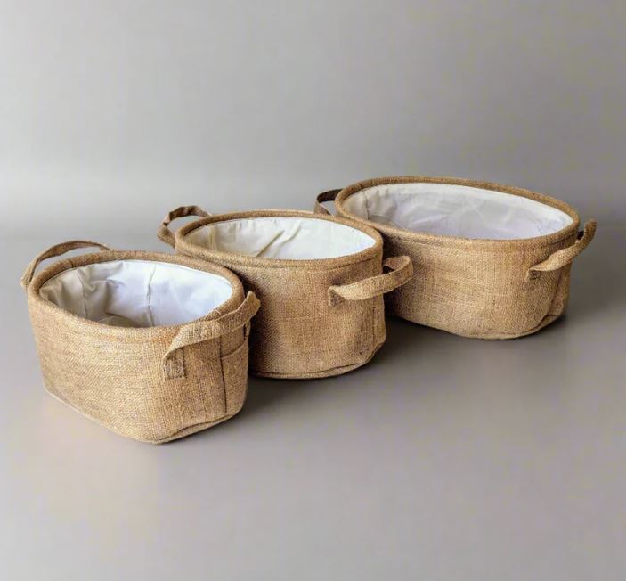 Organize your space with these versatile and stylish Jute Baskets - Set Of 3. These baskets are made from durable jute material, offering a natural and eco-friendly storage solution. Perfect for any room, these baskets provide a clutter-free and organized look while adding a touch of rustic charm to your home decor.