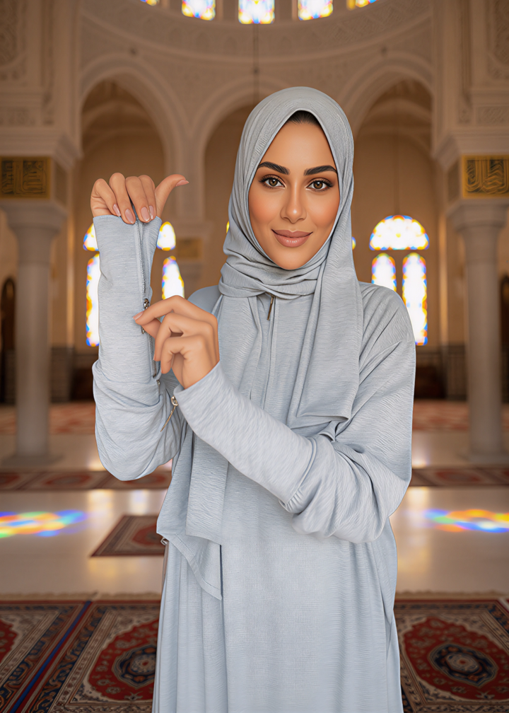 - أكمام بسحّاب خفي لتسهيل الوضوء والحفاظ على أناقة وأناقة الإطلالة اليومية.