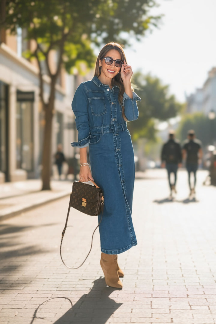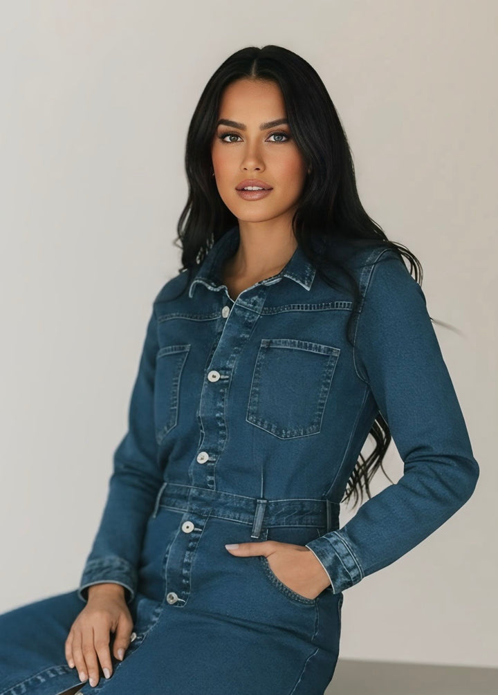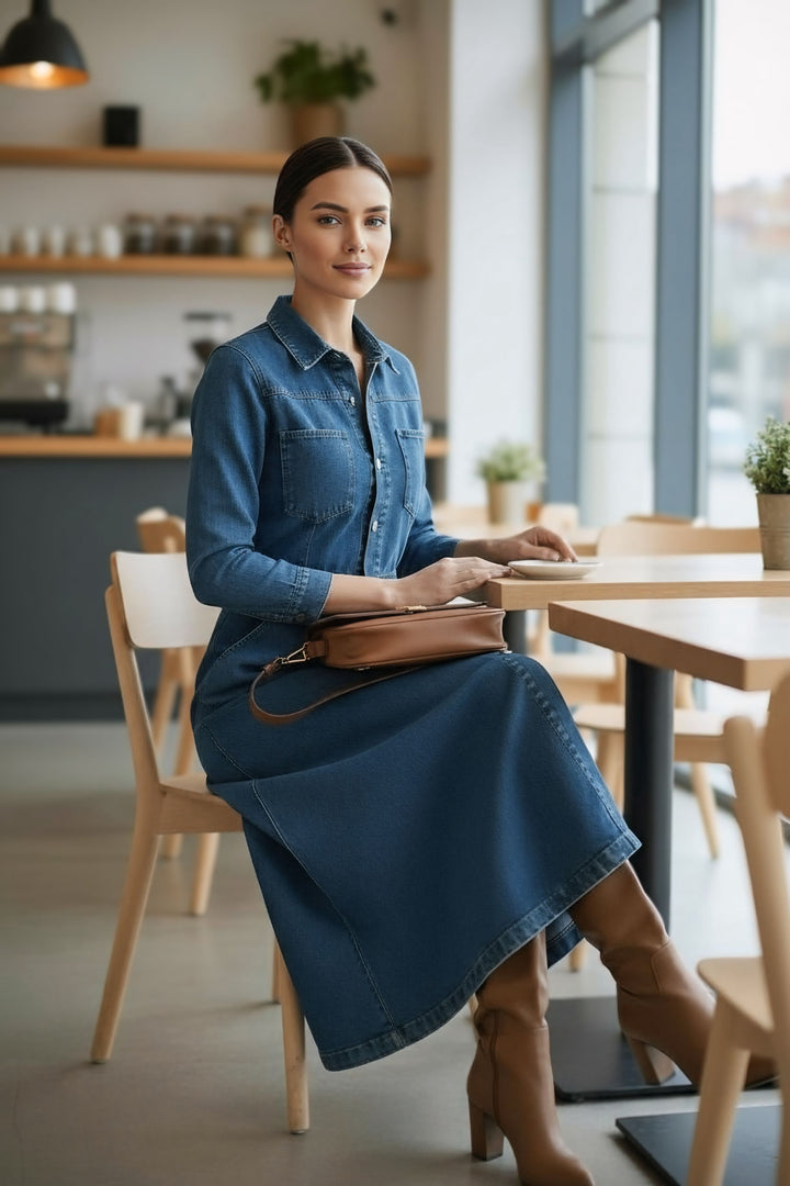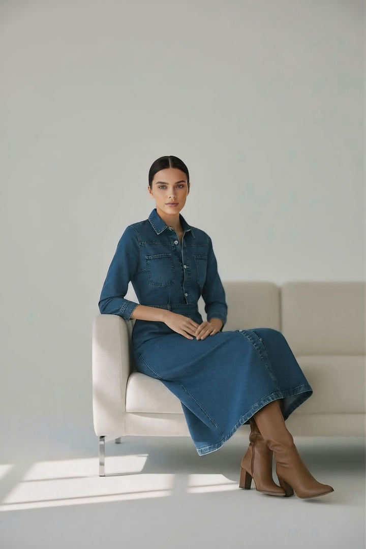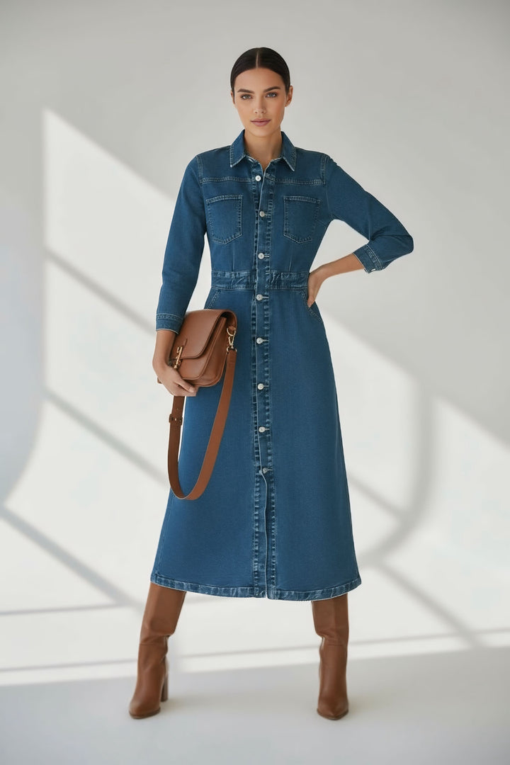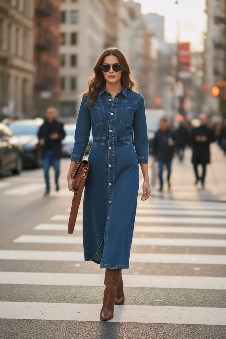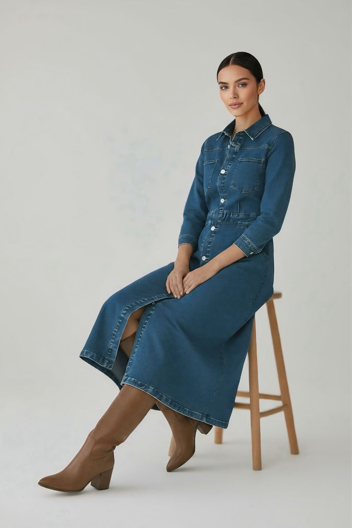 The Denim Safari Dress is your all-season essential — perfect from winter to summer, and every day in between.