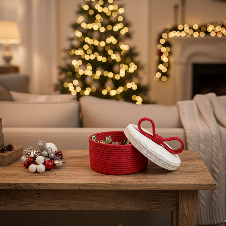 Handmade Woven Storage Basket With Lid