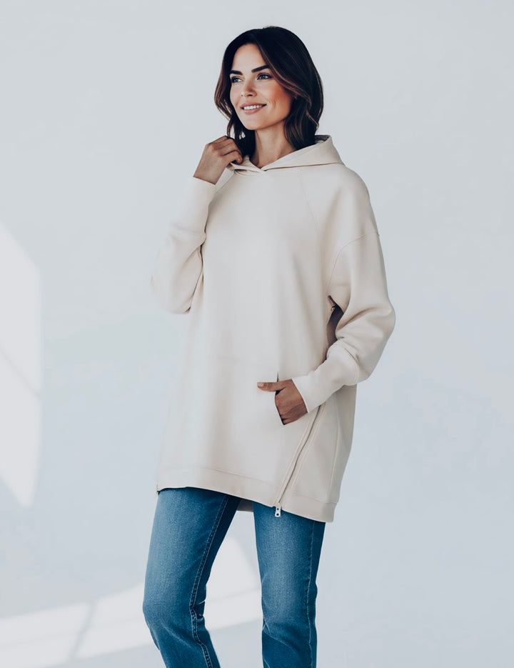 هذا الـ Smart Lady Hoodie صُمّم بعناية ودُقّة خصيصًا للمرأة، ليجمع بين الأناقة والراحة اليومية في قطعة واحدة. مصنوع من أفضل أنواع القطن المصري 100% ليمنحك ملمسًا ناعمًا وفاخرًا، مع ياقة أنثوية تنسدل براحة وأناقة. التفاصيل العملية ترفع من قيمة التصميم—سحّابات جانبية تتيح لك تنسيق الإطلالة مغلقة أو مفتوحة، وكُمّان بسحّابات لتسهيل أداء الوضوء في الشتاء دون التنازل عن الدفء. قطعة متعددة الاستخدامات، محتشمة وعصرية، تتناسق effortlessly مع الليجنز أو السراويل الرياضية أو البوت، لتكون خيارك المثالي لإطلالة شتوية دافئة وأنيقة