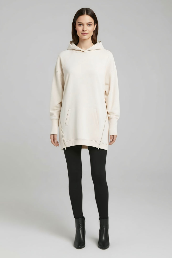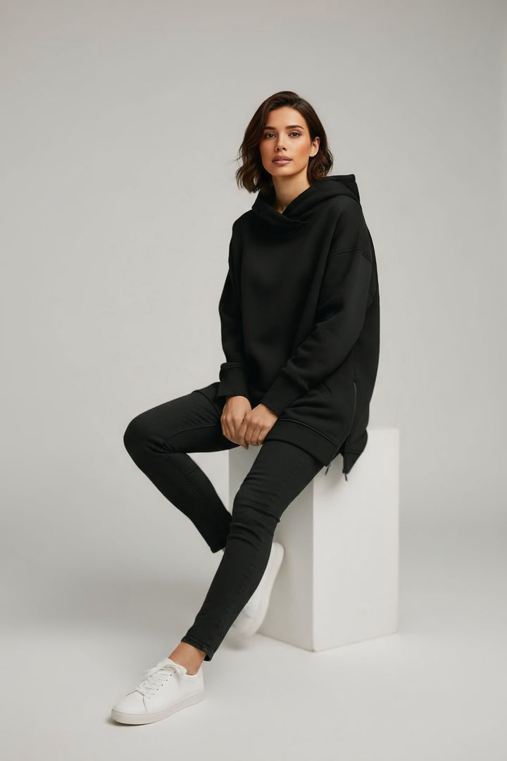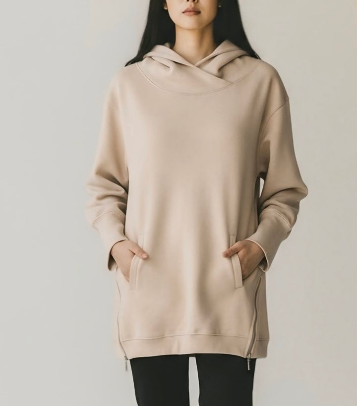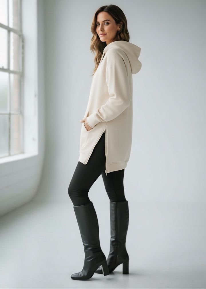This Smart Lady Hoodie is thoughtfully designed and tailored specifically for women, combining elegance with everyday comfort. Made from 100% finest Egyptian cotton, it offers a soft, premium feel with a feminine neckline that sits beautifully and comfortably. Functional details elevate the design—side zippers that allow you to style it open or closed, and zippered cuffs that make winter routines like wudu easier without compromising warmth. Versatile, modest, and stylish, it pairs effortlessly with leggings, track pants, or boots, making it your go-to piece for a cozy and chic winter look.