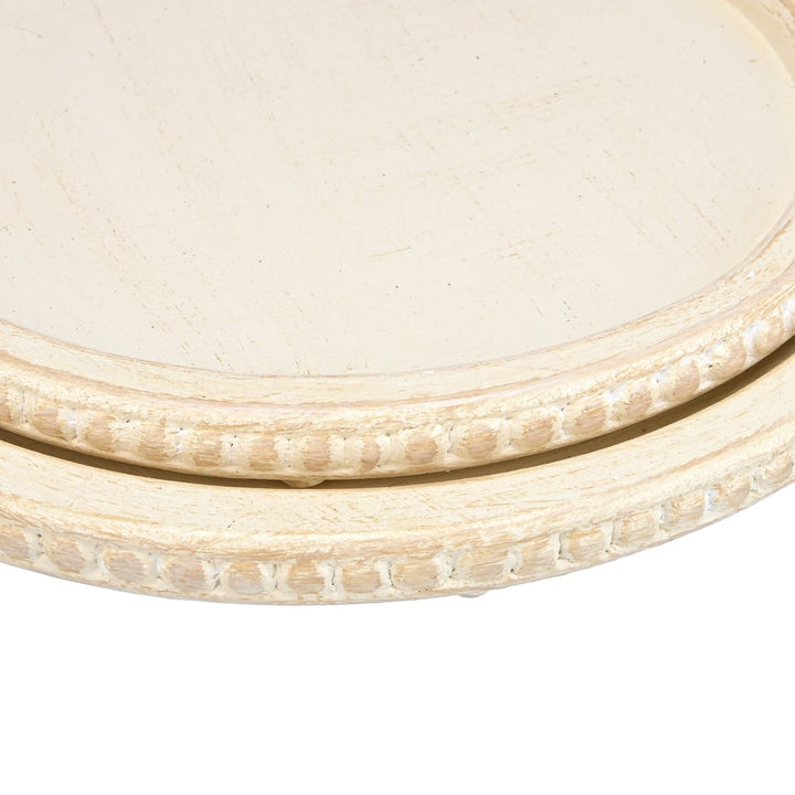 Add a touch of rustic charm to your home decor with this beautiful set of two decorative trays. Crafted with a distressed finish, these trays feature a beaded edge that brings a vintage farmhouse feel to any room. Perfect for displaying candles, small plants, or seasonal decorations, they can be used together as a tiered set or separately to elevate different spaces. Their neutral, earthy tone complements a variety of interior styles, making them a versatile and stylish addition to your home.