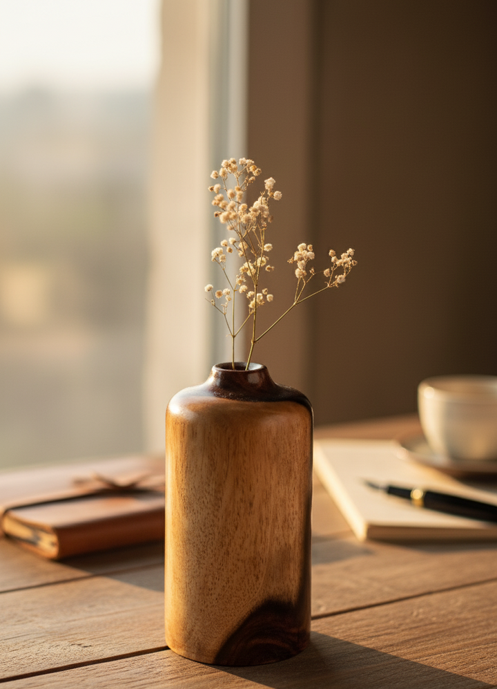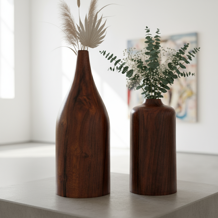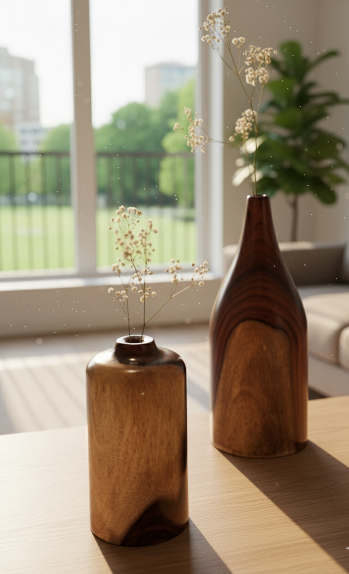 Indulge in the luxury of our exquisite creation, the Royal Elegance vase. Crafted with utmost precision, these two wooden vases are a testament to timeless sophistication. Each vase is meticulously handcrafted, showcasing the perfect blend of elegance and artistry. Elevate your living space with the regal allure of the Royal Elegance, a symbol of refined taste and unparalleled luxury.