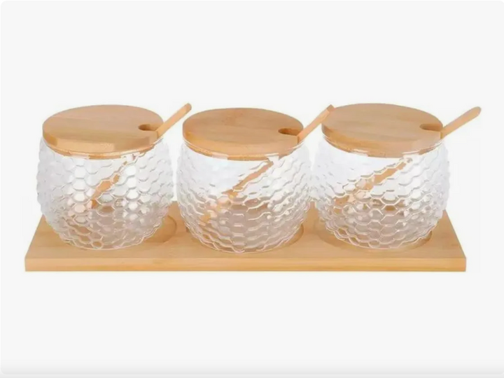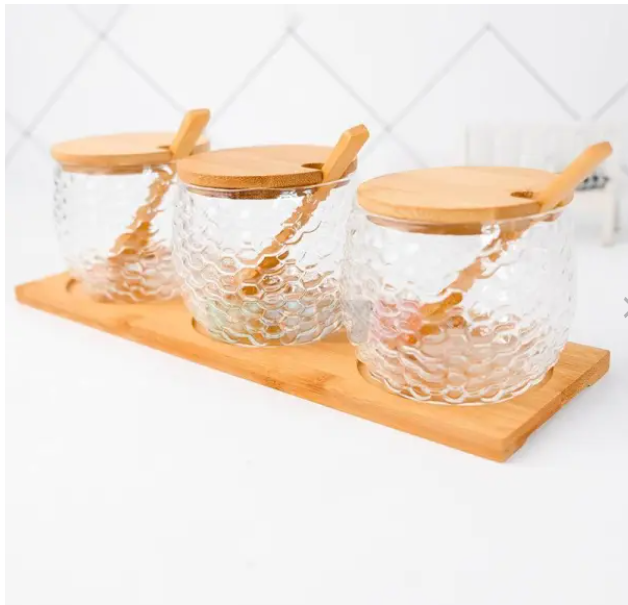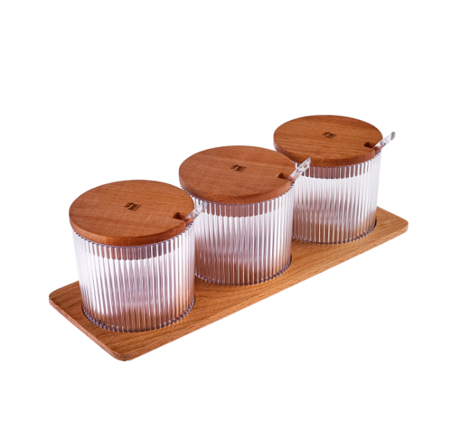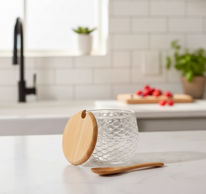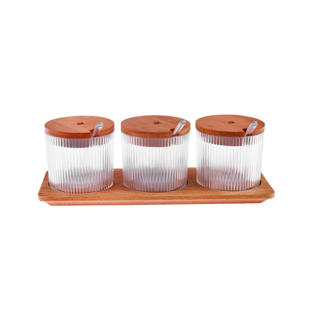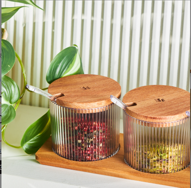 Récipient à épices en verre avec couvercle en bois