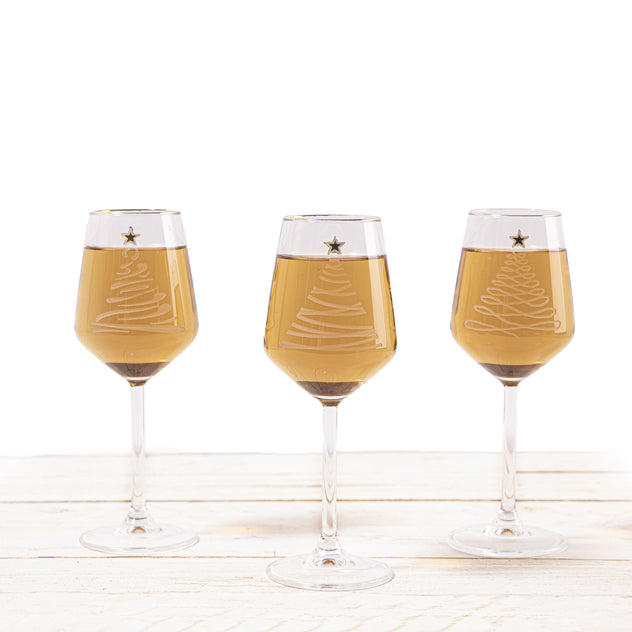 Allegra 6 Wine Glasses Set - Frosted Christmas Tree & Gold Detail