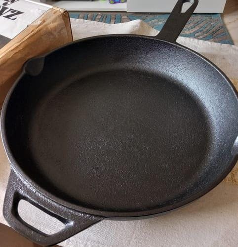 Fonte assaisonnée avec de l’huile de tournesol pure. Attendez-vous à une certaine variation de texture et de couleur.