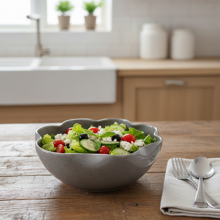 This beautiful Piece will grace your dinner table with its elegant pottery. Perfect for serving dinner, snacks, or sides and suitable for any occasion, this bowl will bring a touch of sophistication to your dining table