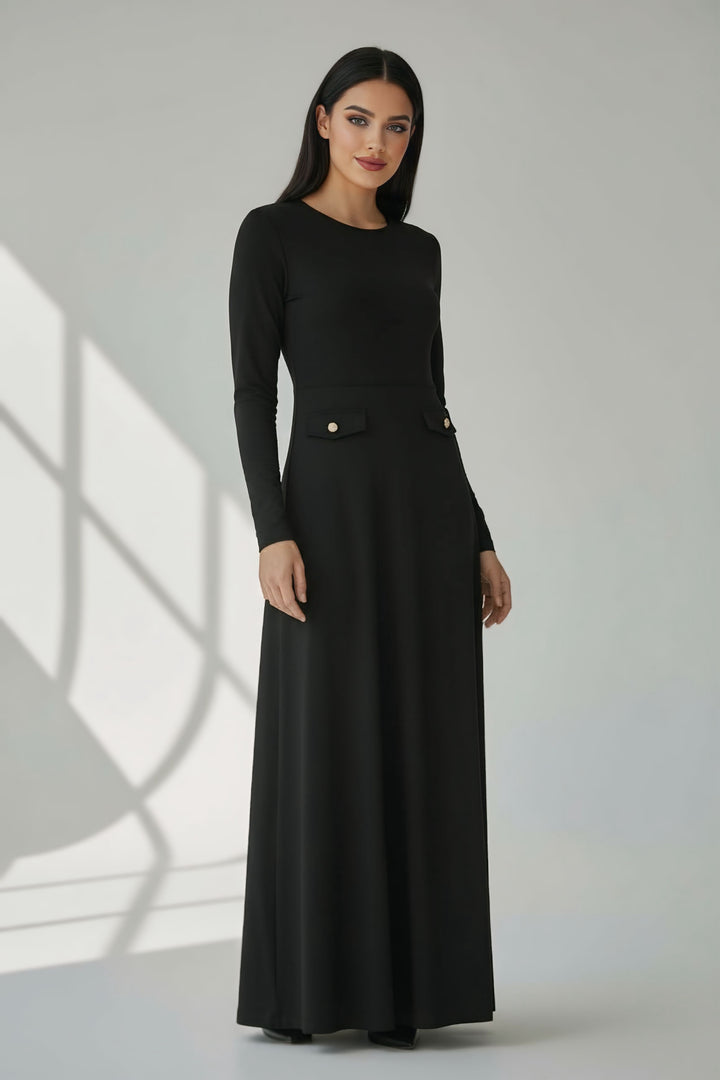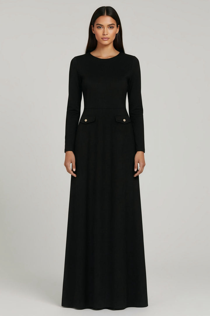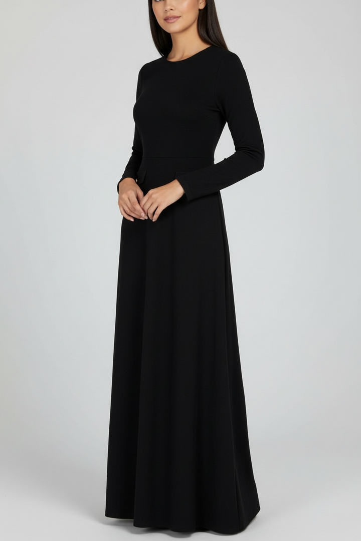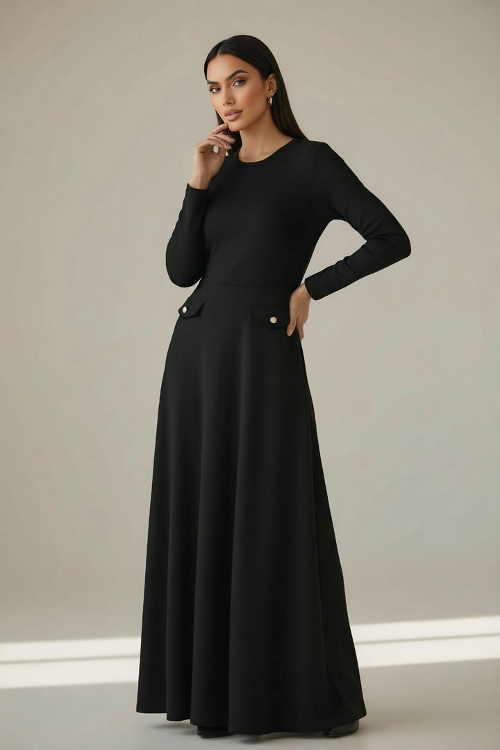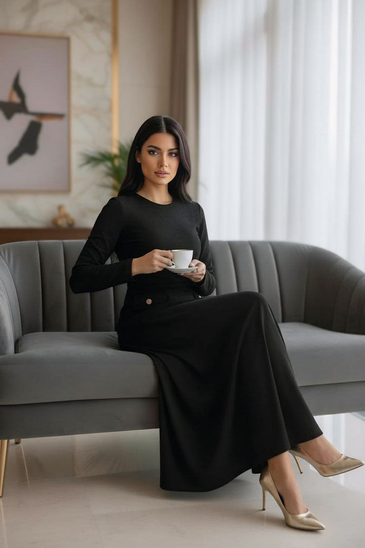 The flattering A-line silhouette enhances the waist and smooths the body beautifully, making it suitable for all body shapes. Its suede finish gives it a rich winter feel — the ideal dress for your evenings, special events, and any moment you want to look elegant effortlessly.