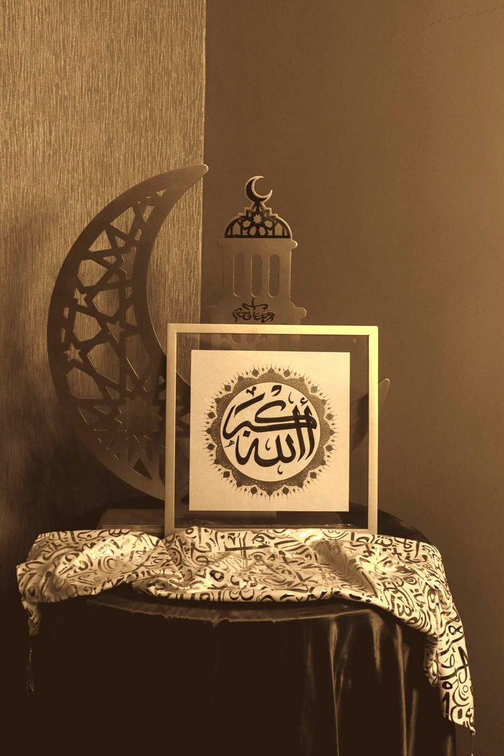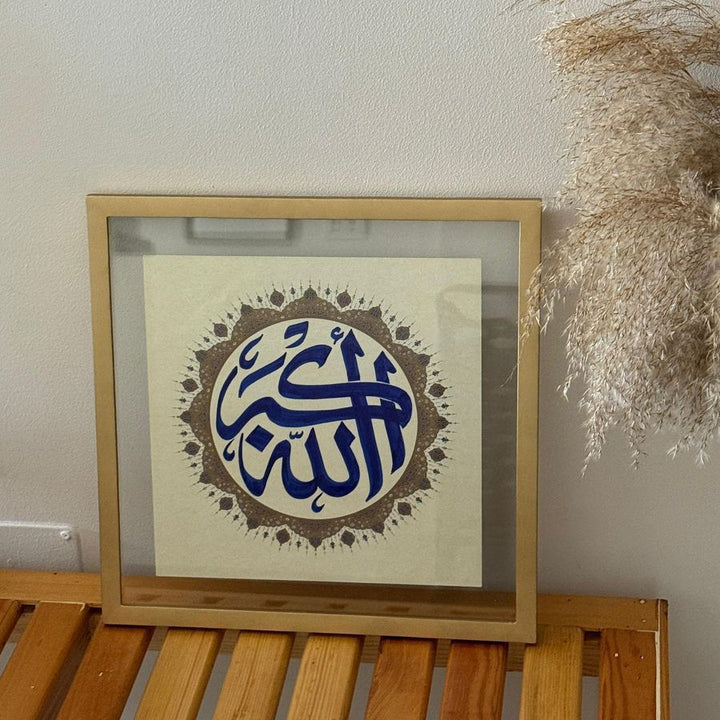 Meaning “God is the Greatest”. Boldly penned in black ink on decorative paper.
