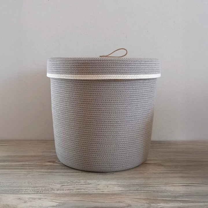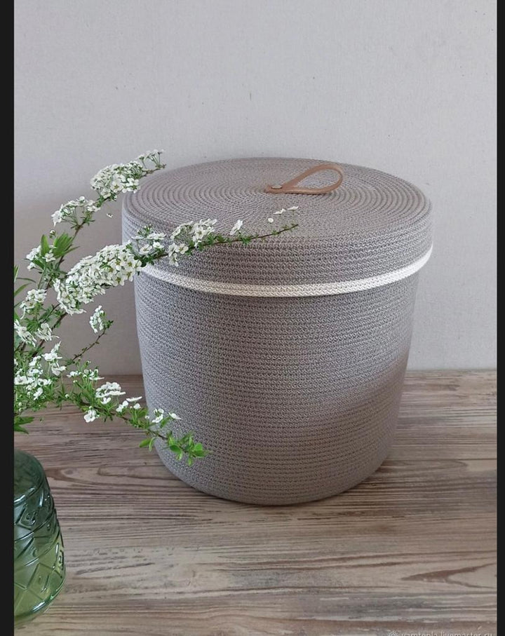 "Handmade woven storage basket with lid can be used indoors and outdoors".