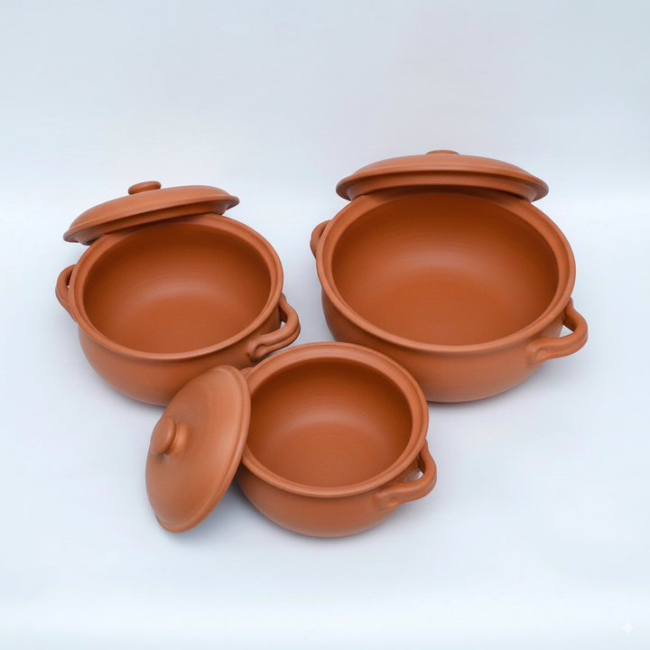 Terracotta Cooking Pots Set with Lids